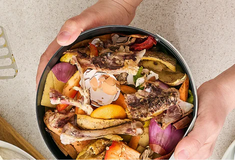 Collect food waste from kitchen scraps and add it to the FoodCycler Bucket.